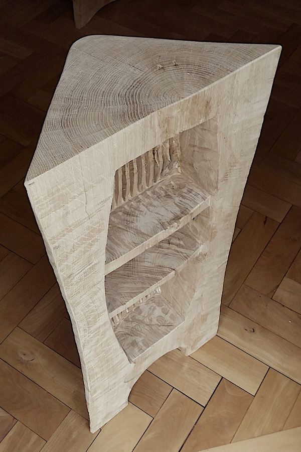 Es begann damit, als ich für mich selber Möbel aus massivem Eichenholz ausschliesslich mit der Kettensäge kreierte. Dabei sollen die Möbelskulpturen möglichst aus einem Stamm sein, ohne Metallverbindungen, ästhetisch klar und in ihrer Rustikalität überzeugen. Hier nun meine ersten Arbeiten: