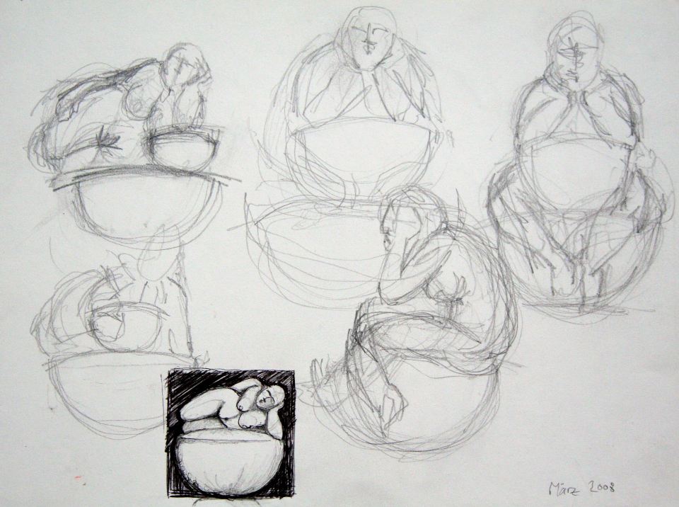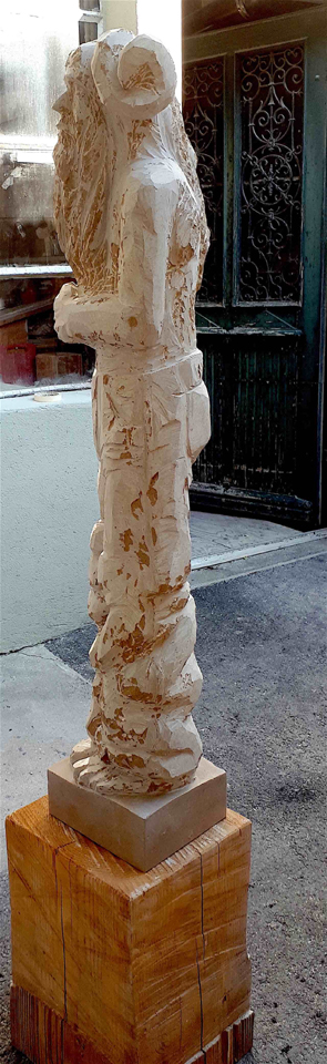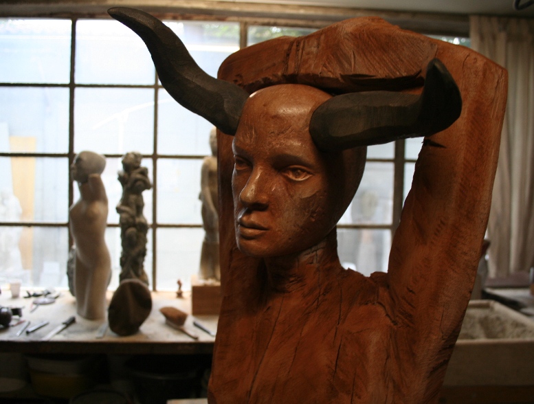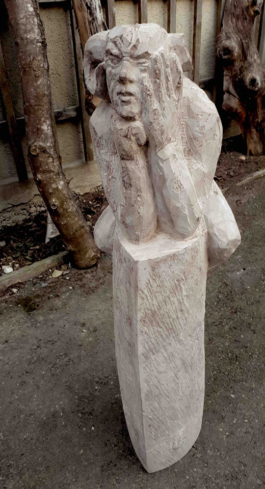 Hauptsächlich - aber naürlich nicht ausschliesslich - beschäftige ich mich mit der Darstellung des Menschen. Die Objekte reichen dabei von der Meter hohen Holz- und Steinskulptur bis zur Bronzeplastik in Fingergrösse.